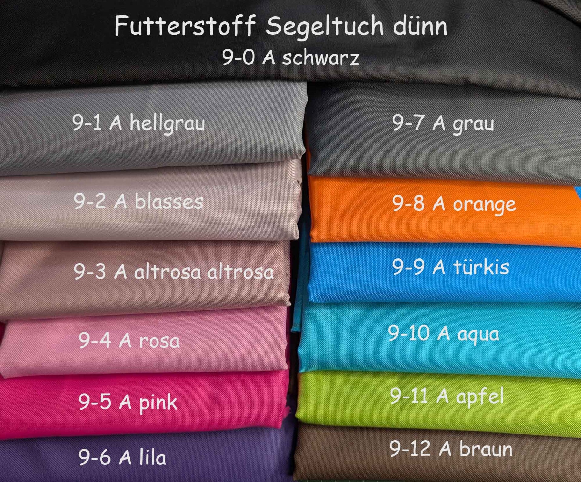 - Dünner Segeltuch in großer Farbauswahl (siehe Beispielbild)