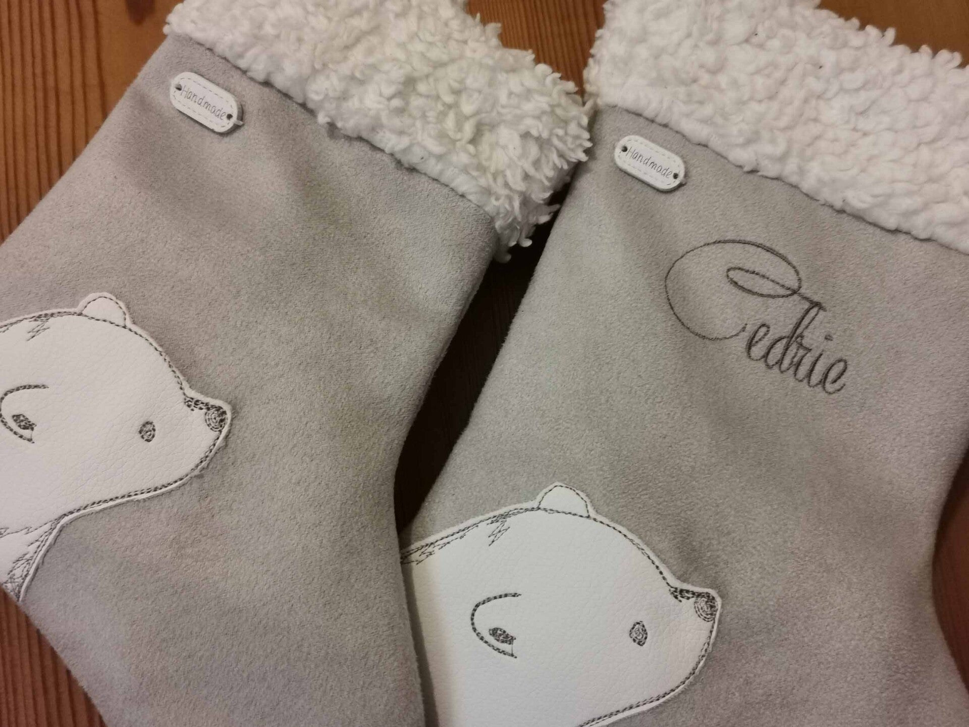 Eine wunderschöne Socke für Weihnachten, Nikolaus oder Pelzamertel. Der Weihnachtsstrumpf ist in 2 Größenerhältlich. Die Eisbär ist von mir gezeichnet und dann gestickt.