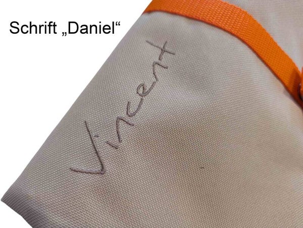 - Text oder Name: Dein Wunschtext für die Bestickung