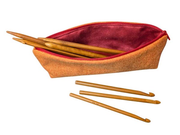 Mit extra Reißverschlussfach für unbenutzte Stricknadeln (max. Länge 21 cm).