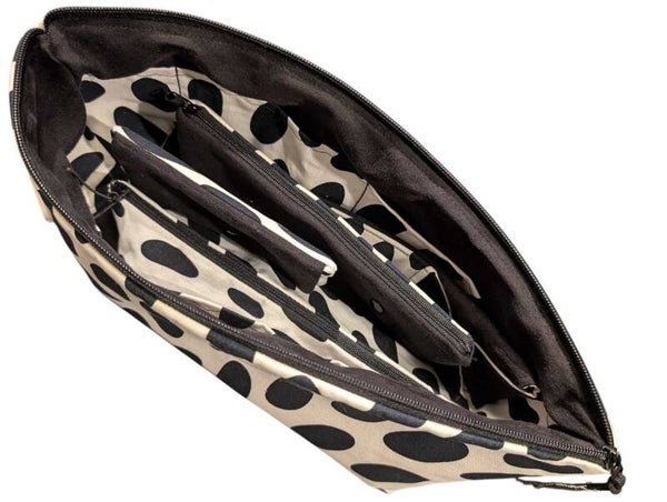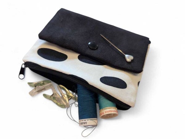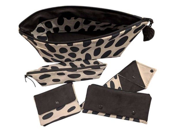 Dieses Set umfasst fünf sorgfältig gefertigte Taschen – ideal für Nähen, Sticken, Häkeln und Stricken. Jedes Produkt entsteht in Einzelarbeit und verbindet Kreativität mit praktischer Nutzung. Die Materialkombination aus Baumwolle mit Punkten, Alcantara und hochwertigen Reißverschlüssen sorgt für eine angenehme Optik und zuverlässige Haltbarkeit. Perfekt für alle, die ihre Handarbeitsutensilien übersichtlich, geordnet und gut geschützt aufbewahren möchten.