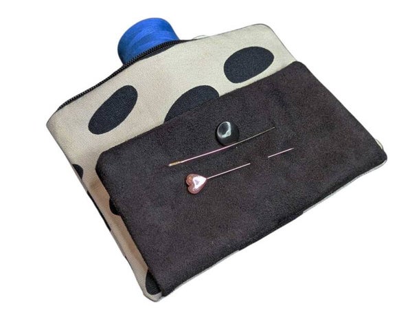 Mit zusätzlichem Fach für Garn. Das Nadelkissen besitzt zwei Klappen, beide weich mit Vlies gefüttert – ideal für Stecknadeln, Nähnadeln und Sicherheitsnadeln.