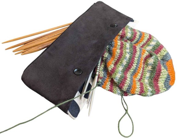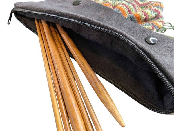 Mit extra Reißverschlussfach für unbenutzte Stricknadeln (max. Länge 21 cm).