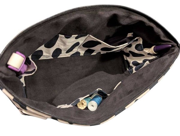 Ideal für Stoffe, Garne, Zubehör und größere Projekte. Innenfächer auf beiden Seiten bieten viel Stauraum und ermöglichen eine strukturierte Sortierung. Ein festes Vlies sorgt für zusätzliche Stabilität.