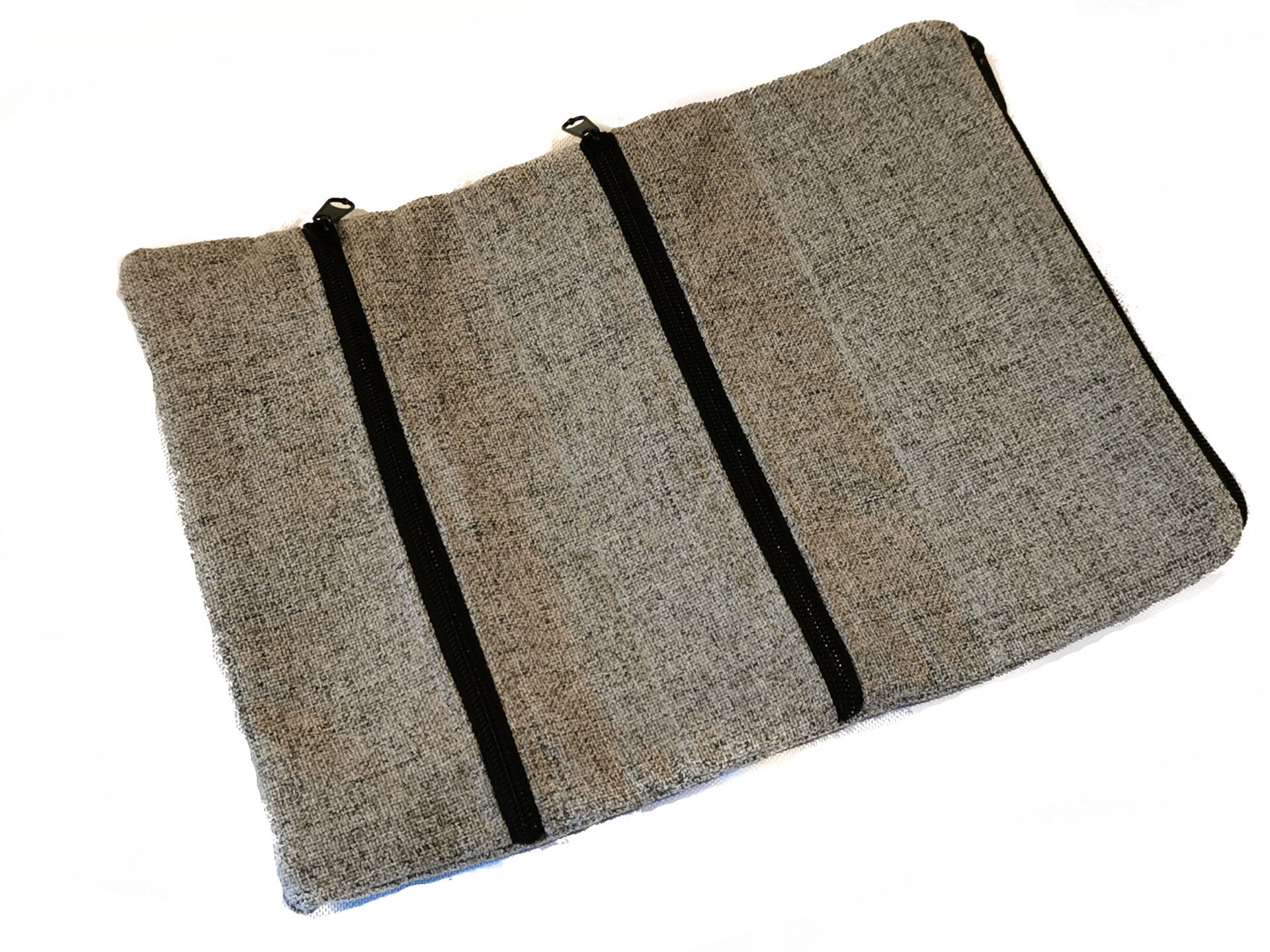 Innen ist das Mäppchen standardmäßig mit einem schwarzen Baumwollstoff gefüttert. Auf Wunsch auch gerne in einem anderen Futterstoff