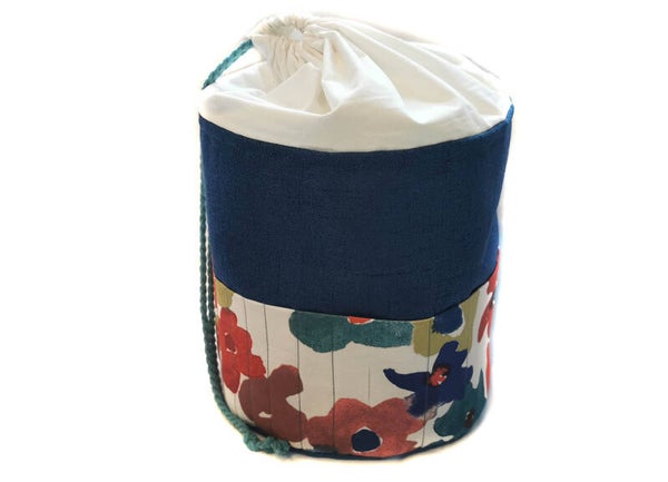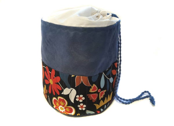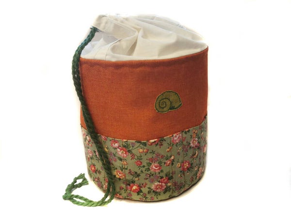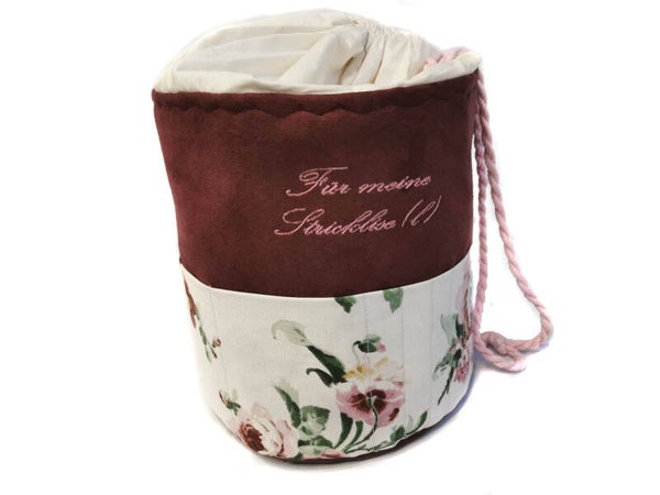 Einfach das Wollknäul in die Tasche legen, die Kordel zuziehen und schon kann man loslegen, ohne dass die Wolle wegrollt.