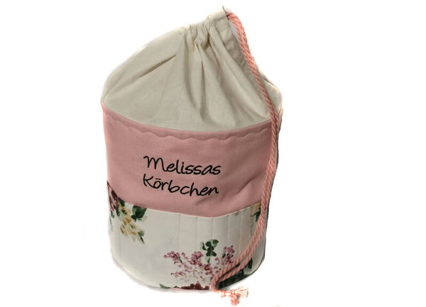 Der Handarbeitskorb wird mit großem Innenleben und verschiedenen Außentaschen genäht. Alles was man fürs Stricken und Häkeln braucht findet im Innenraum und in den Fächern genug Platz.