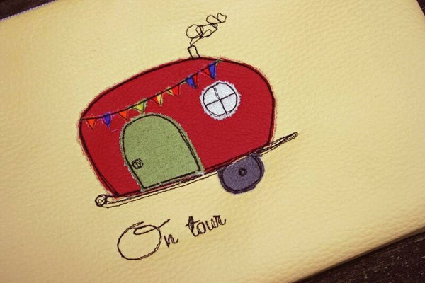 - Stickmotiv Wohnwagen in rot Kunstleder