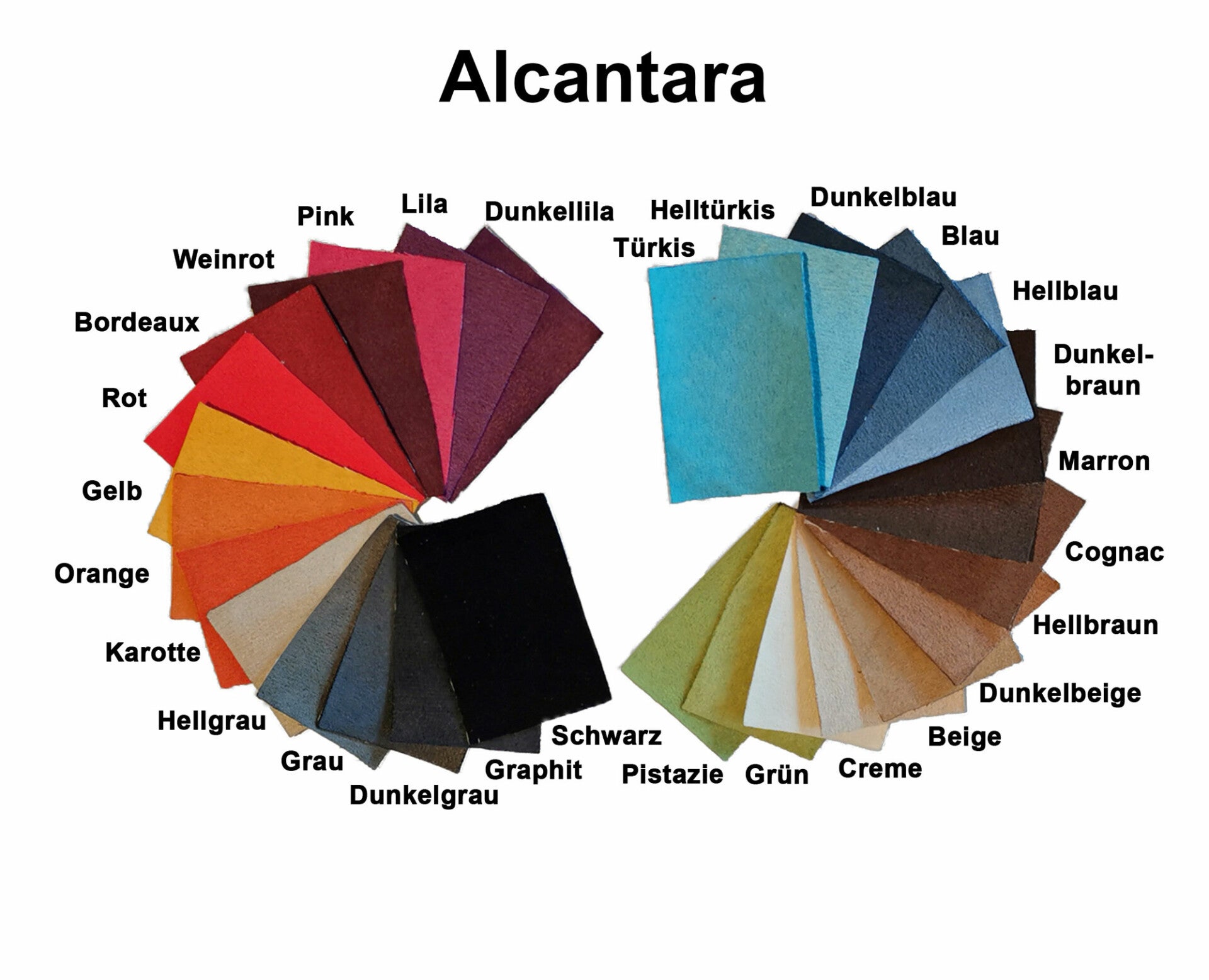 Schriften: Auf Kunstleder können aus technischen Gründen nur die im Bild unten abgebildeten Schriften verwendet werden.