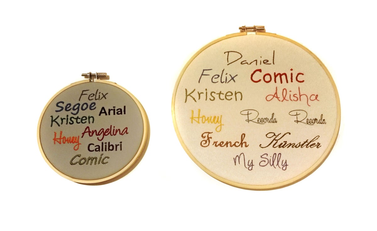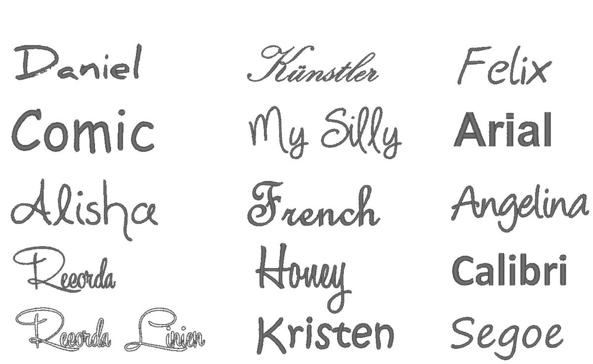 Textstickerei: bitte beachten das bei Kunstleder nicht alle Schriften möglich sind