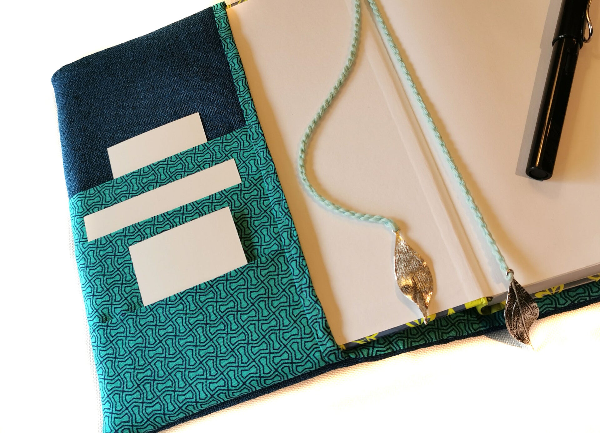 Steckfächer: Innen links aus Innenstoff, für Visitenkarten oder Zettel.