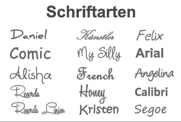 - Namenstickerei bei Kauf die Schrift, Garnfarbe, Position und Text mit angeben