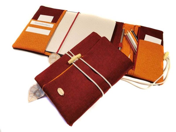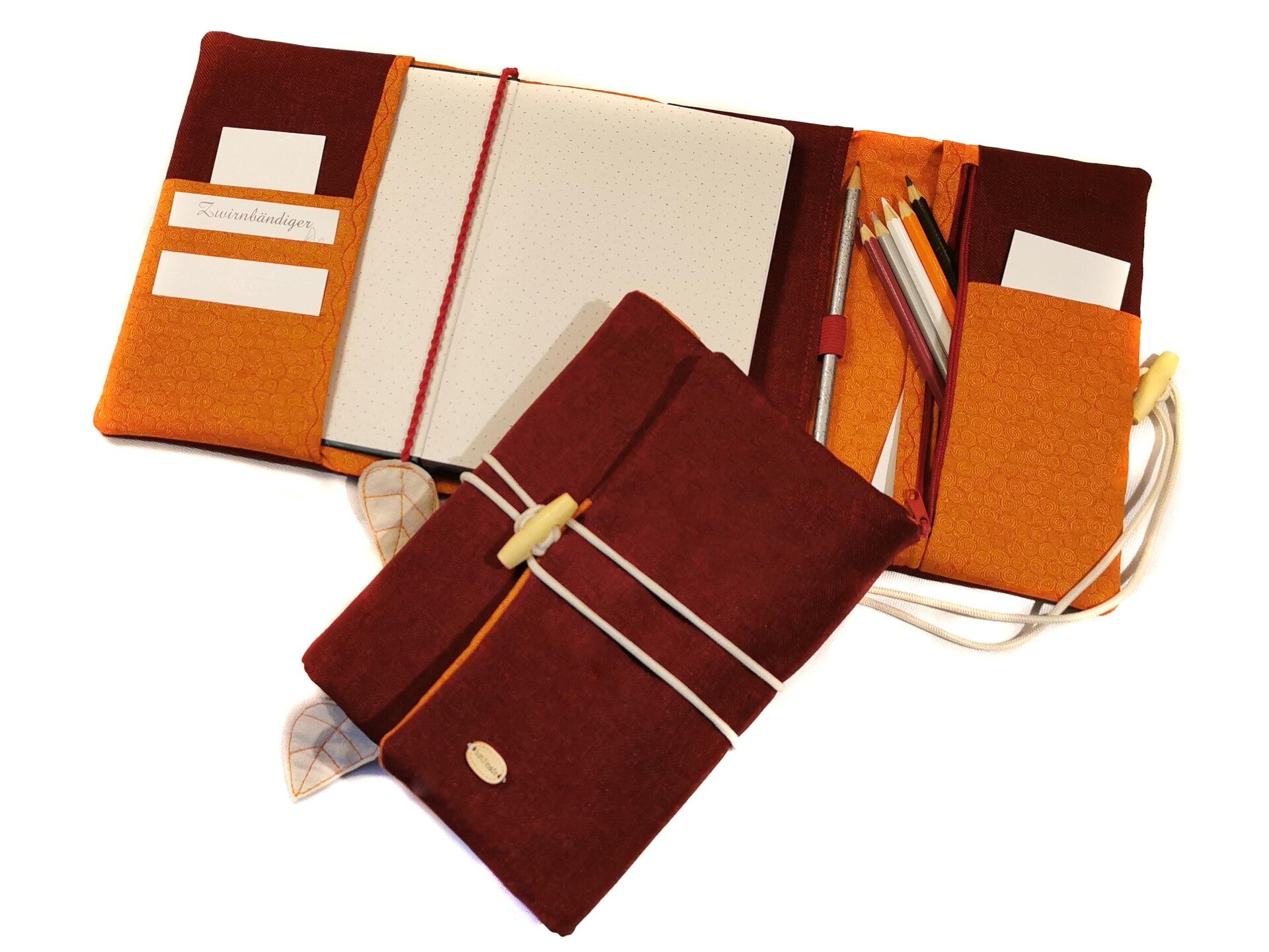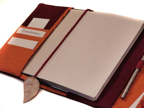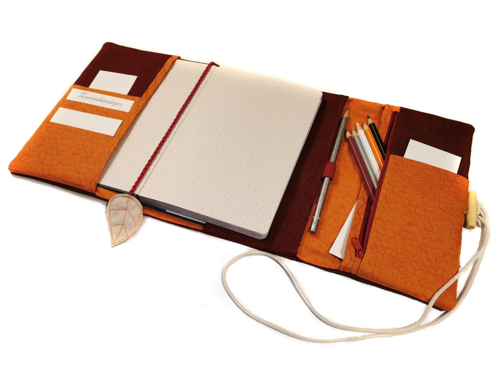 Der Organizer bietet viele verschiedene Möglichkeiten für Kalender oder Notizbuch, wie z.B. Lesezeichen, Stiftelasche oder Steckfächer für Visitenkarten und Zettel. Das Federmäppchen sorgt dafür das mehrere Stifte dabei sein können, und der Reißverschluss verhindert das rausfallen. Hinter dem Federmäppchen befindet sich ein Fach für Taschenrechner oder Handy. Die Hülle ist mit festem Vlies im inneren gearbeitet und dadurch sehr formstabil.