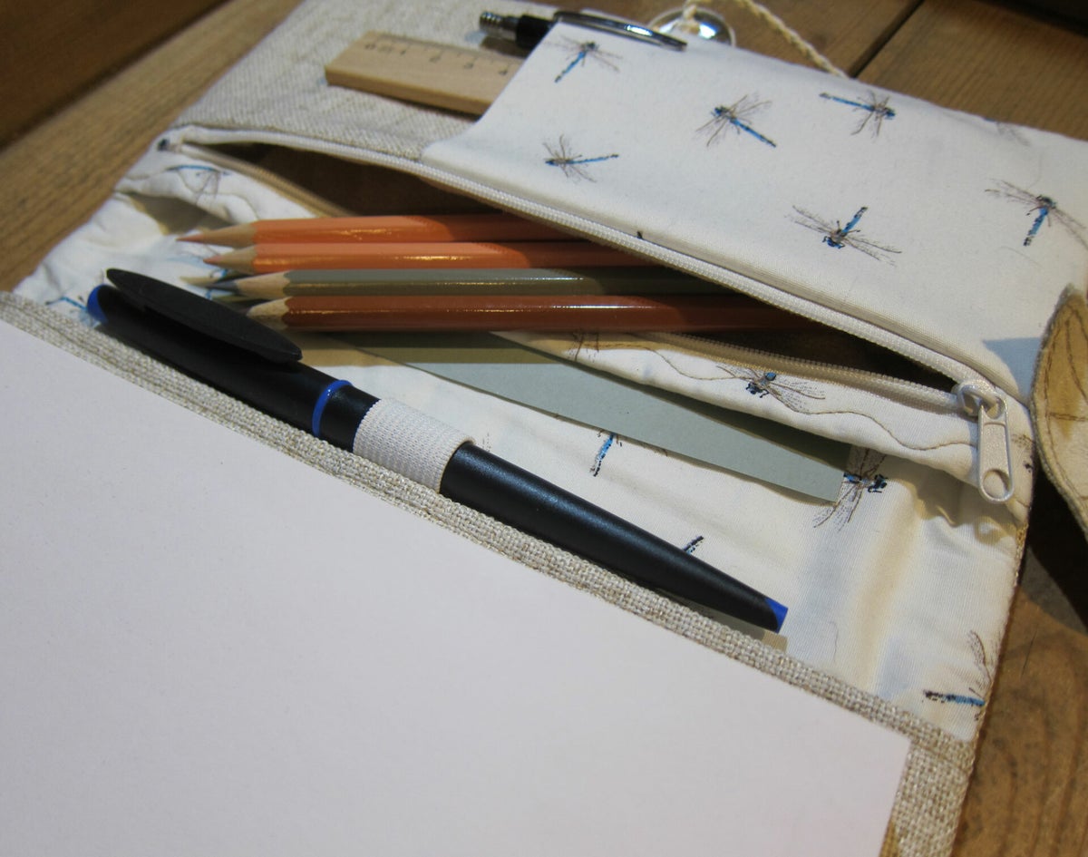 Ob Stifte, Zettel oder Lineal – im handgemachten Organizer hat alles seinen Platz. Die Stiftelasche hält den Lieblingsstift stets griffbereit. - Praktische Zusatzfächer